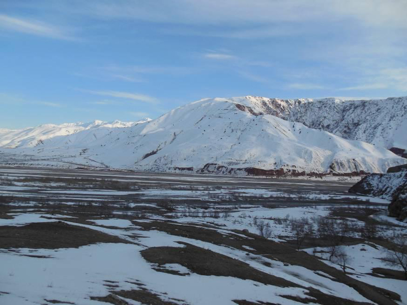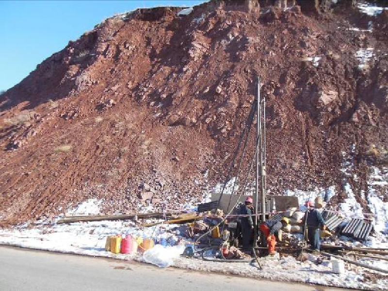 2014年3月5日我項目部由蜀通巖土工程公司技術顧問柏建利,項目經理孫敏、技術負責趙江龍同志及甲方負責人陳國文陪同下,不畏現場冰雪溜滑路面、冒著坡體危巖墜落危險對現場進行踏勘。29#隧道滑坡為一古滑坡,總方量約1.5億m3,地形條件復雜,坡體高陡,加之冰雪覆蓋;因此在技術及施工條件都存在極大的挑戰。經過現場考察后,我海外項目部及時組織技術研討會,在聽取了甲方負責人陳國文、蜀通巖土工程公司技術顧問柏建利對技術難點指導,最終確定方案并及時組織人員、機械設備開展工作。