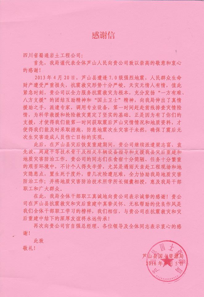情系災區人民 承擔社會責任 不畏艱難險阻 彰顯巖土大愛