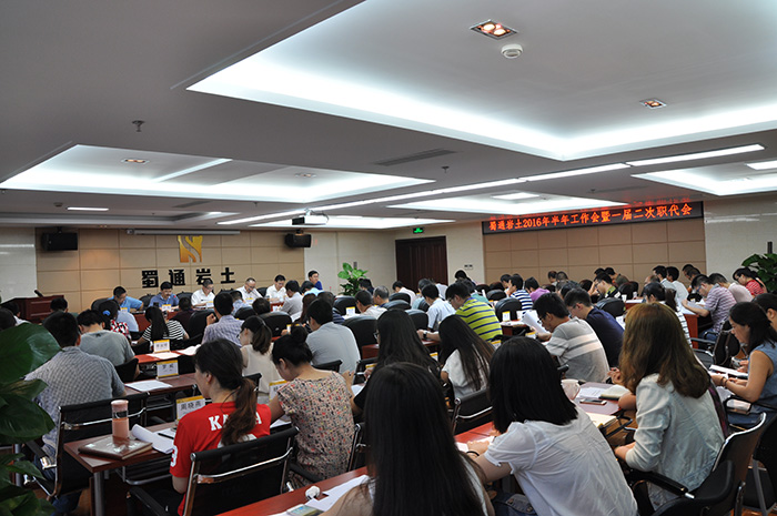 本報訊 (通訊員 秦川 攝影 雷林涓)7月22日,蜀通巖土2016年半年工作會暨一屆二次職代會在公司33樓會議室召開,公司班子成員、中層干部及職工代表共80余人參加了會議。