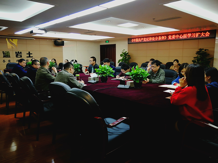 近日,蜀通巖土公司黨委組織中心組學習擴大會,專題學習《中國共產黨紀律處分條例》。公司黨委委員、中層干部參加了會議。