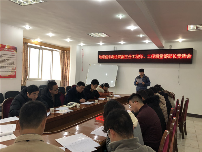 (通訊員 孫孟楊)為適應(yīng)公司的高質(zhì)量發(fā)展需求,提高測繪專業(yè)的技術(shù)水平和服務(wù)質(zhì)量,培養(yǎng)骨干人才展后備力量,加大技術(shù)質(zhì)量管理與創(chuàng)新力度,2月26日下午,蜀通巖土地理信息測繪院召開了副主任工程師、工程測量部部長競選會,院領(lǐng)導(dǎo)班子、管理人員、技術(shù)人員共計19人參會。