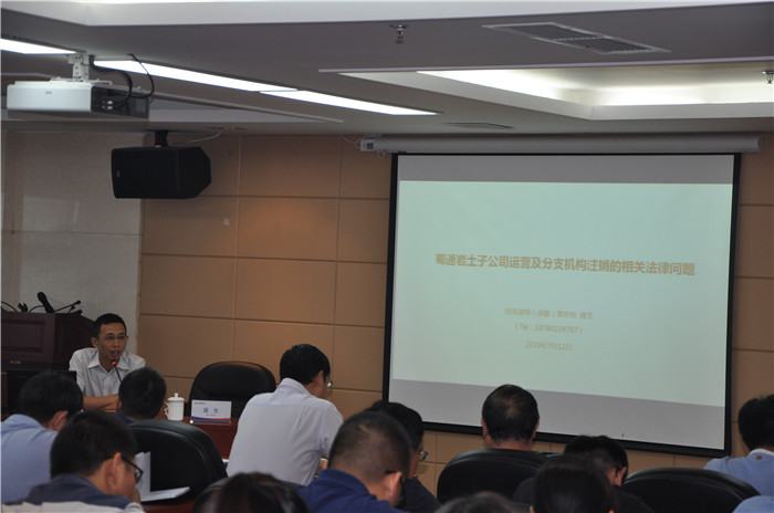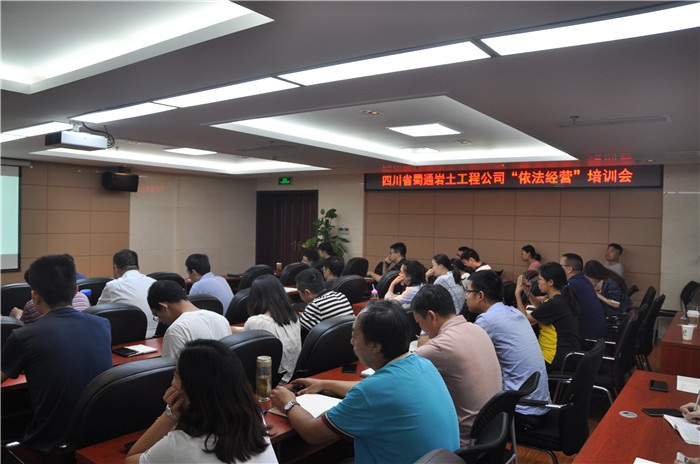 按照局2019年下達完成蜀通巖土集團公司組織架構搭建重點工作任務要求,蜀通巖土于6月底完成集團公司組織架構搭建。為進一步規范子公司運行,防范各類風險,7月12日上午,蜀通巖土組織召開了“依法經營”培訓會,邀請國浩律師(成都)事務所律師授課,公司班子成員、各專業公司班子成員、駐外分公司負責人及全體管理人員等80余名干部職工參加了培訓。